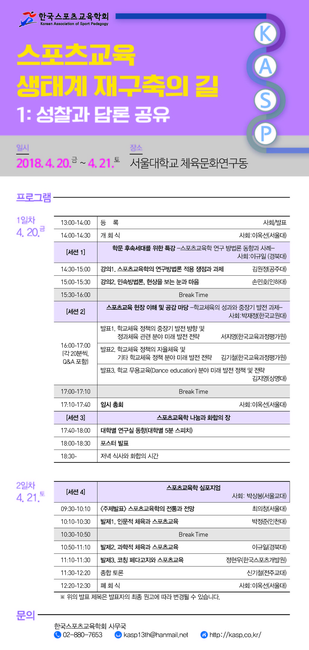 2018년도 한국스포츠교육학회 춘계학술대회