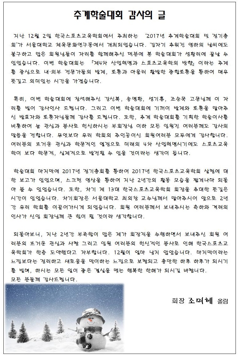 한국스포츠교육학회 회원여러분 새해 복 많이 받으세요
