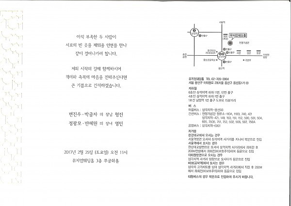 장 소 : 뮤지엄웨딩홀 3층 무궁화홀 (서울 용산구 이태원로 29)