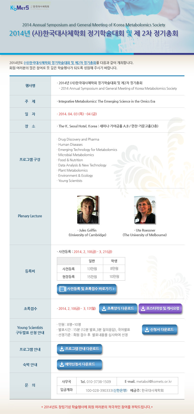 행사명 : 2014년 (사)한국대사체학회 정기학술대회 및 제 2차 정기총회