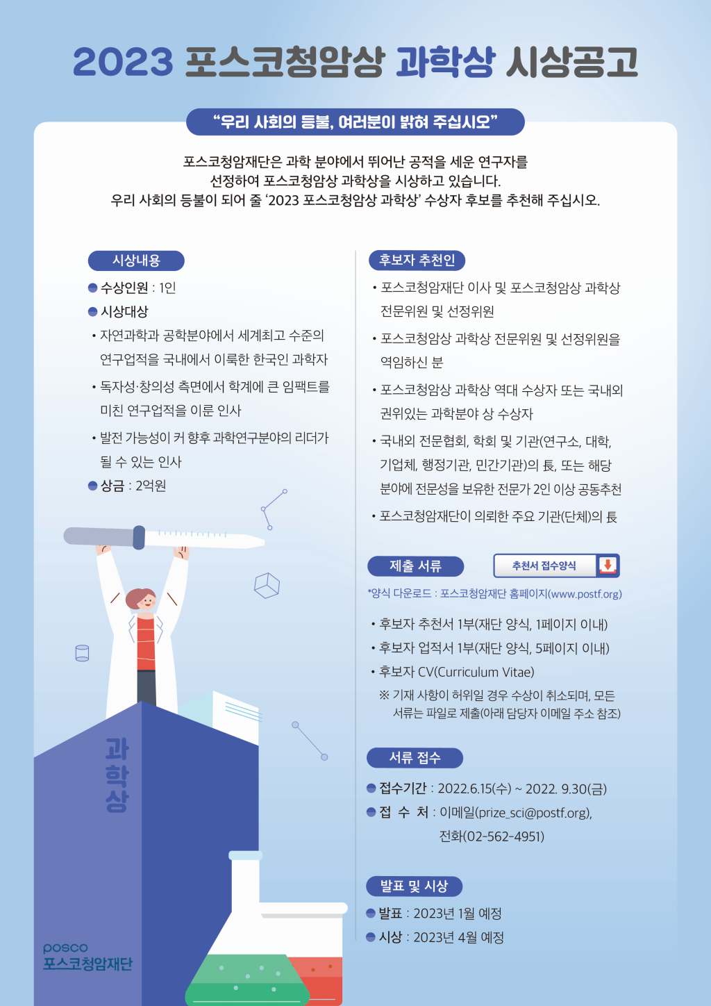[포스코청암재단] 2023 포스코청암상 과학상 시상공고