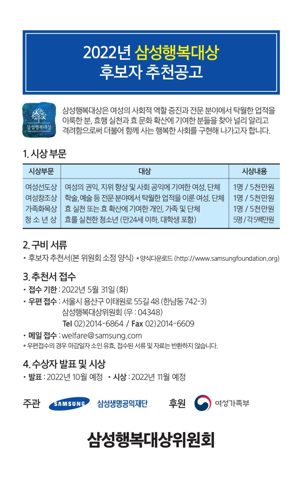 [삼성행복대상위원회] 삼성행복대상 후보자 추천공고 안내