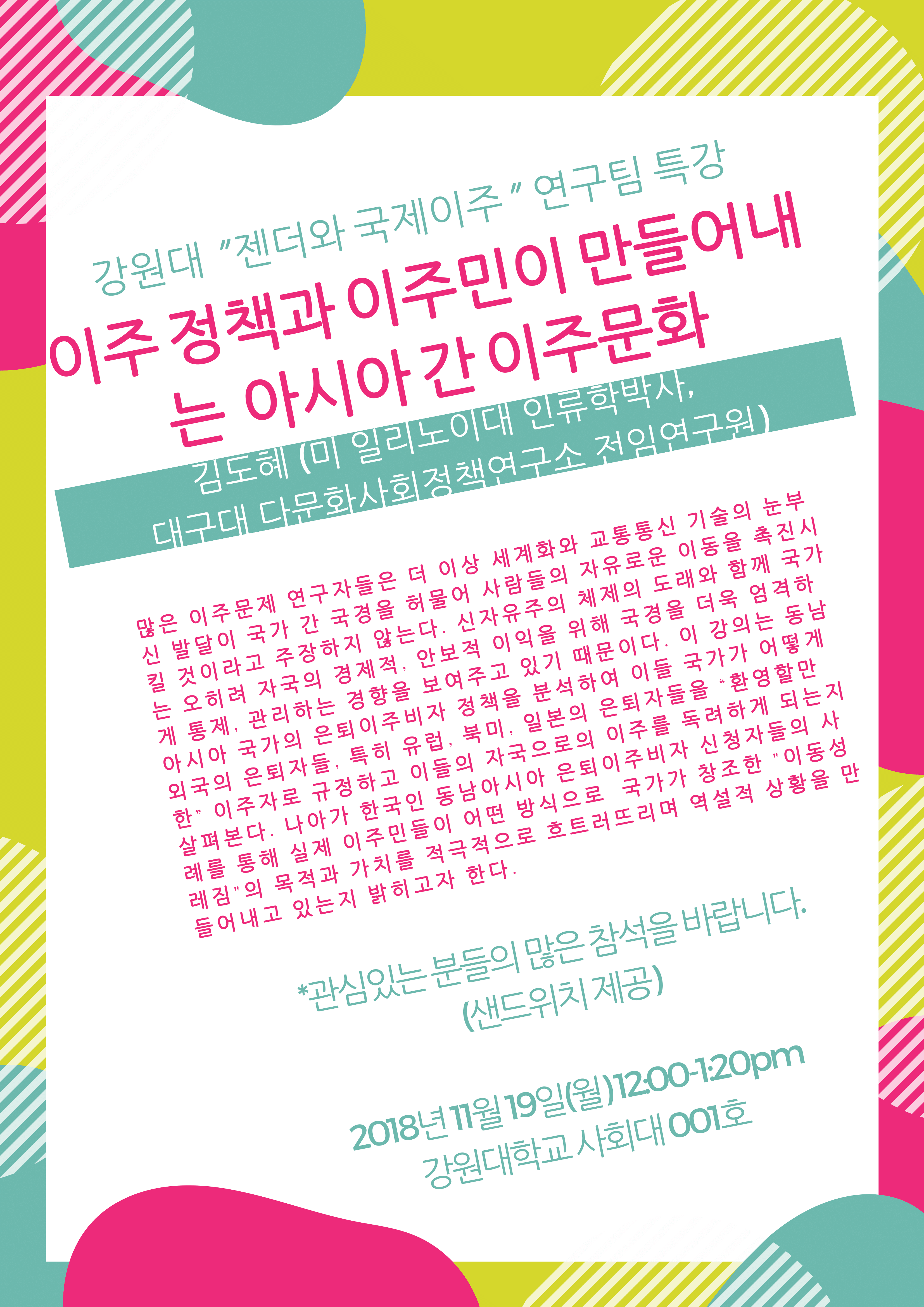 특강 안내: 이주정책과 이주민이 만들어내는 아시아간 이주문화