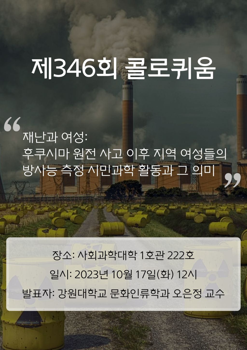 사회과학연구원에서는 다음과 같이 제346회 콜로퀴움을 개최하오니,