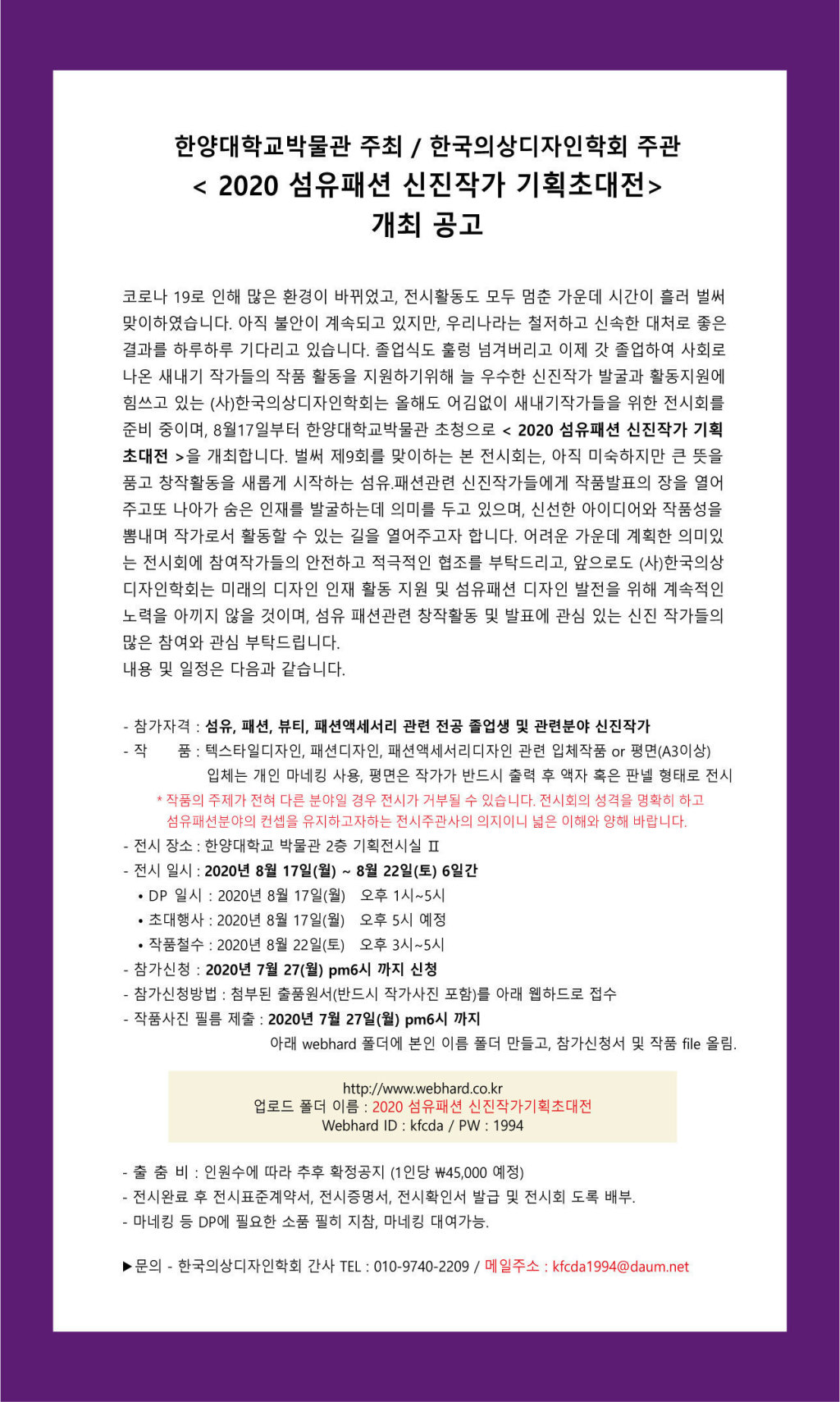 <2020 섬유패션 신진작가 기획초대전> 공고를 알려드립니다.