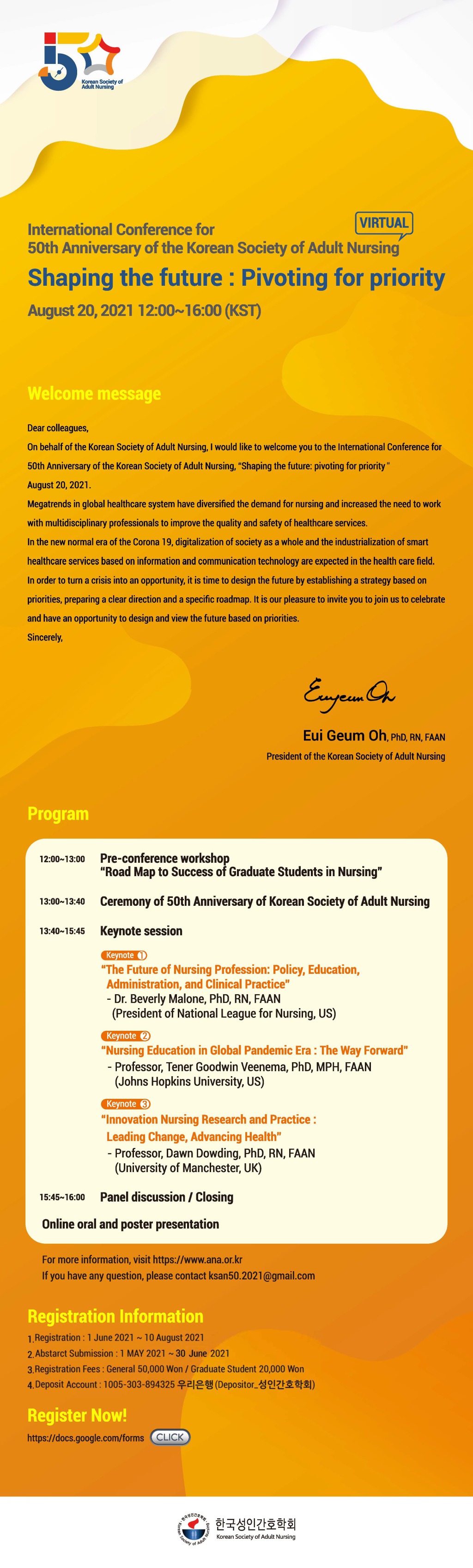 [한국성인간호학회]한국성인간호학회 창립 50주년 기념 국제학술대회 개최안내