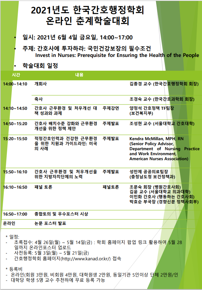 [한국간호행정학회]2021년도 한국간호행정학회 온라인 춘계학술대회 개최안내