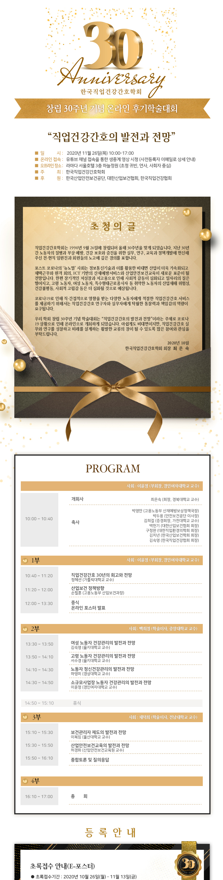 [한국직업건강간호학회] 2020년 한국직업건강간호학회 창립 30주년 기념 온라인 후기학술대회 개최 안내