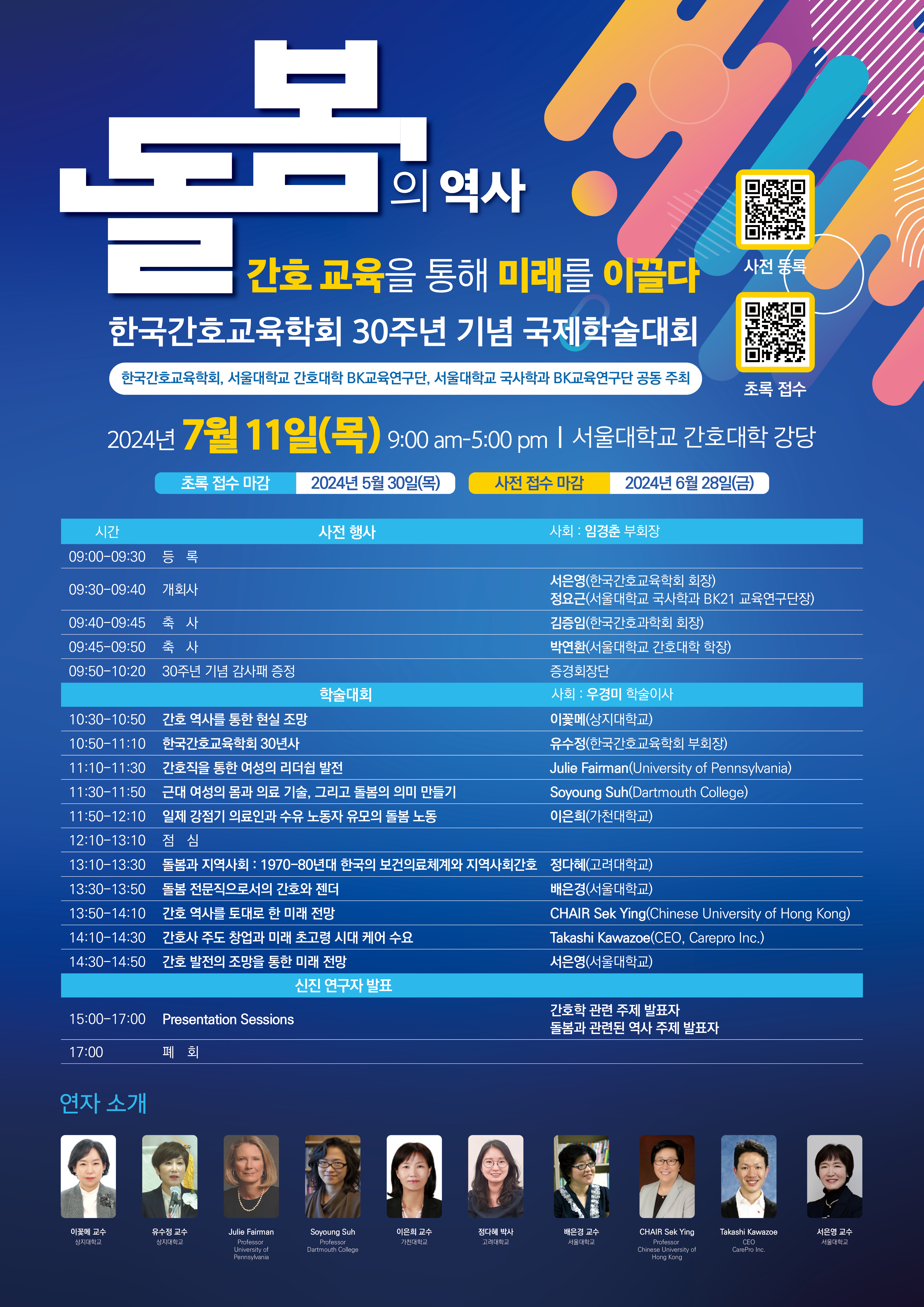'돌봄의 역사: 간호 교육을 통해 미래를 이끌다' 라는 주제로 국제학술대회를 개최합니다.