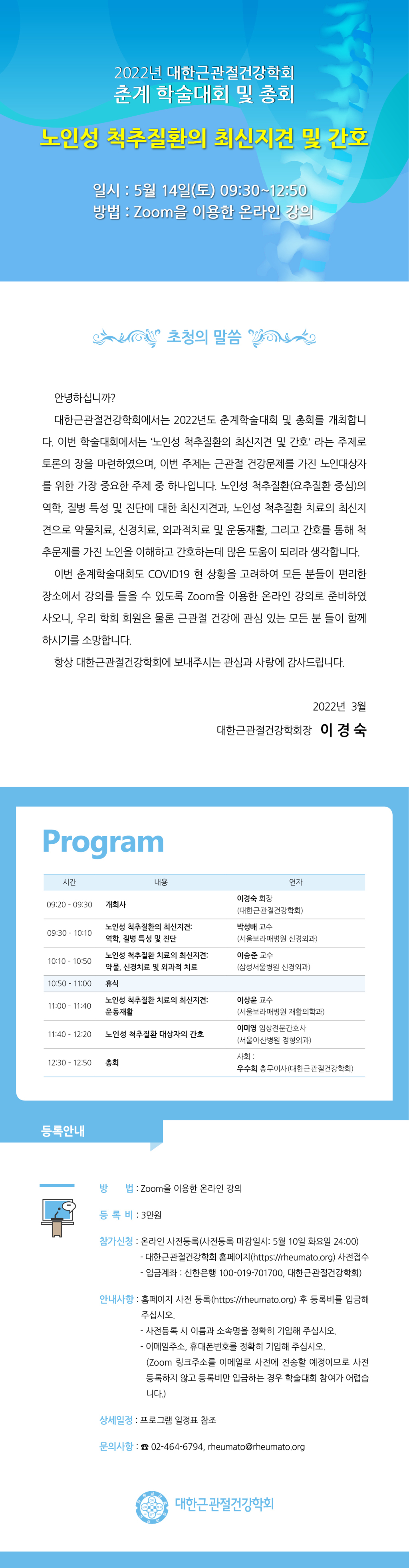 2022년 근관절건강학회 춘계 학술대회 및 총회 안내