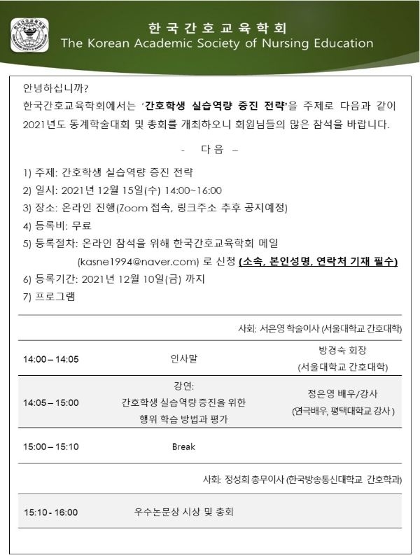 7) 문의: 한국간호교육학회 총무간사 (E-mail: kasne1994@naver.com)