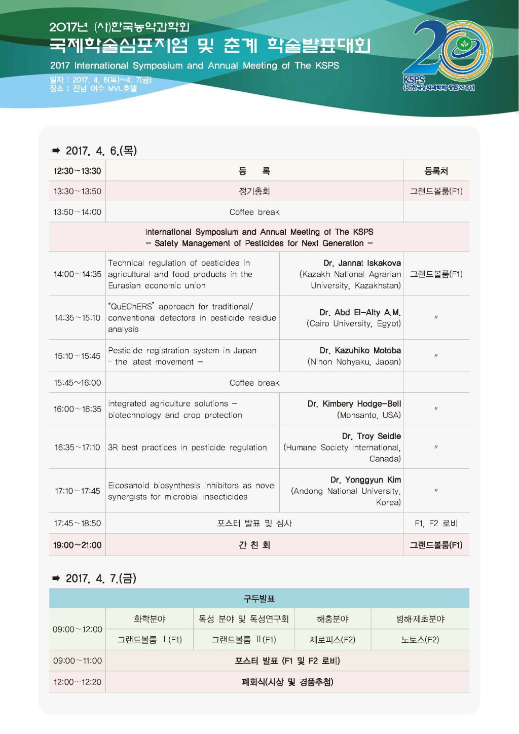 한국농약과학회-2017년 국제학술 심포지엄 및 춘계학술발표대회 일정표