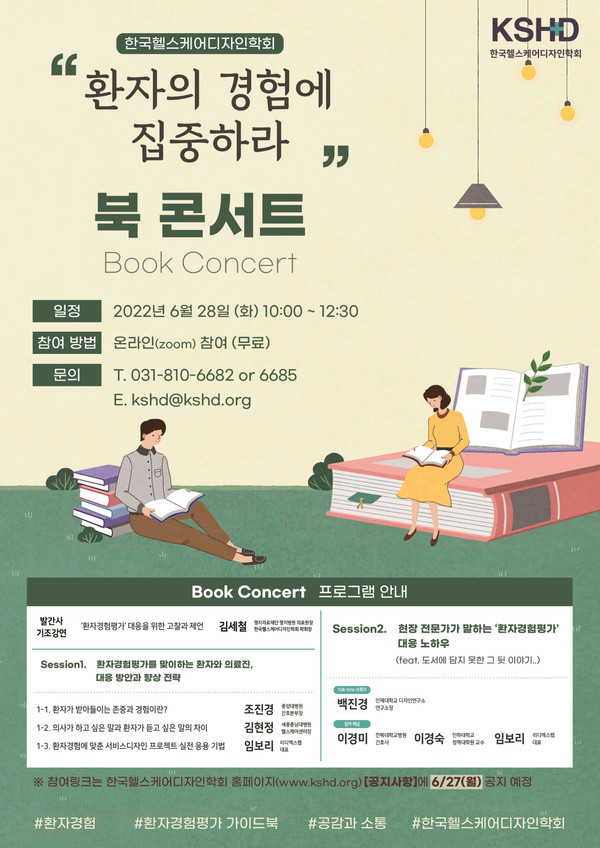 한국헬스케어디자인학회(KSHD)가 환자경험평가 가이드북인 ‘환자의 경험에 집중하라’ 발간 기념 온라인 북 콘서트를 열었다.
