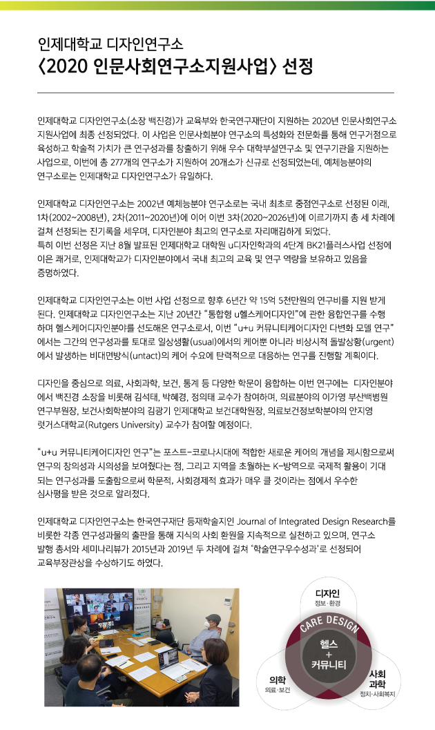 인제대학교 디자인연구소, 2020 인문사회연구소지원사업 선정