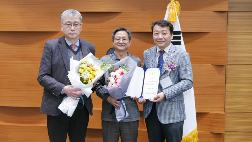 ▲(좌에서부터) 대한치의학회 제8대 회장 당선자 권긍록 교수, 대한치의학회 선거관리위원회 박덕영 위원장