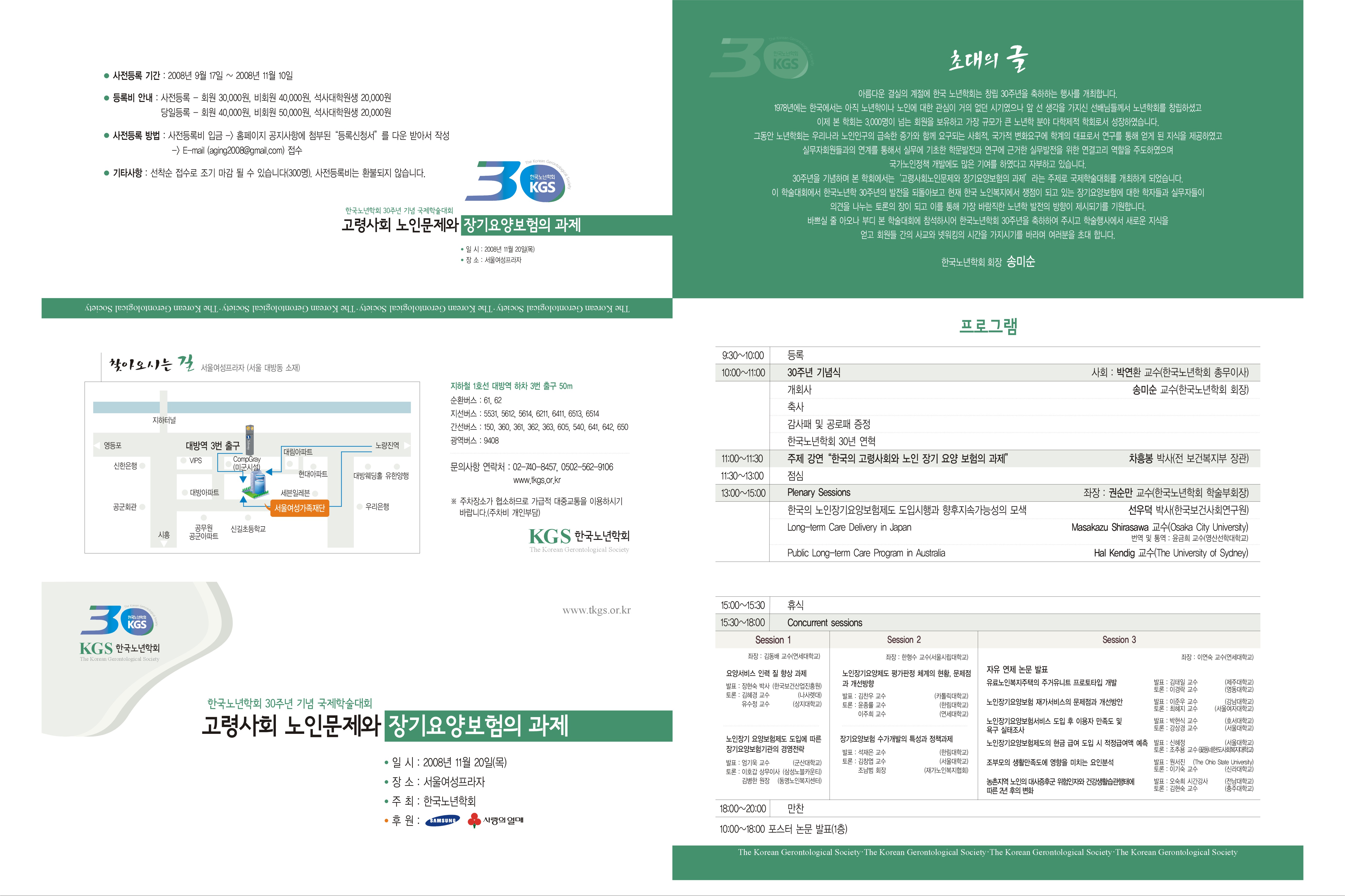 저희 한국노년학회에서는 30주년을 맞이하여 국제학술대회를 개최하며 아래와 같은 일정으로 사전등록을 받고자 합니다. 회원 여러분들의 많은 관심과 참여를 부탁드립니다.