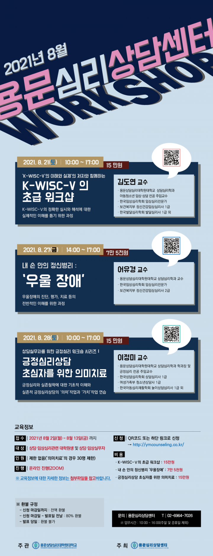 상담 및 임상심리를 공부하고 있는 대학원생과 상담 및 임상 현장 실무자분들의 많은 관심과 참여 바랍니다.