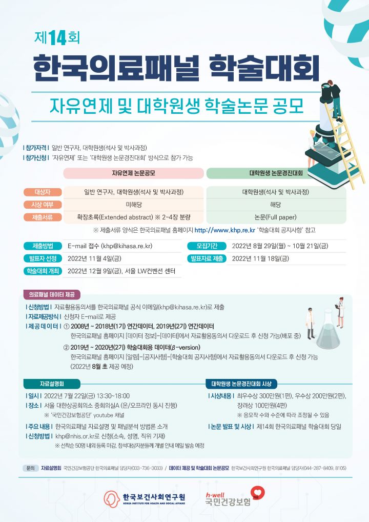 한국의료패널의 제14회 학술대회 논문공모 및 자료제공 안내 드립니다.