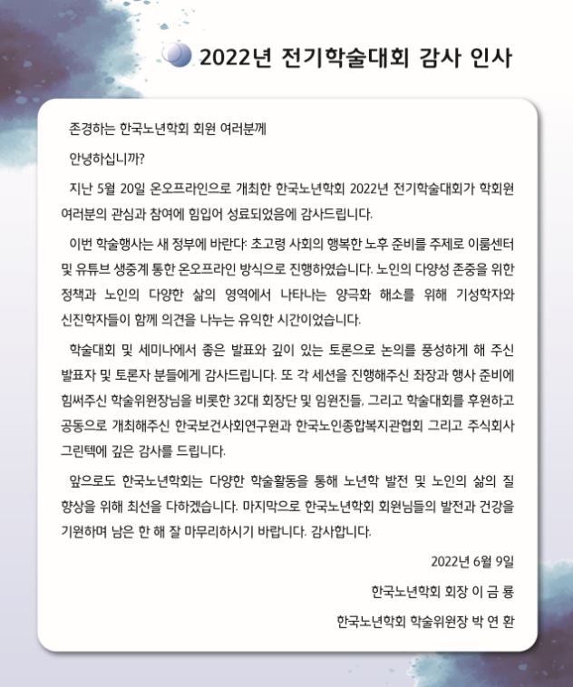[한국노년학회] 2022년 전기학술대회 감사 인사