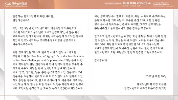 [감사인사] 제 16회 서울노년학 국제학술심포지엄 성황리 개최