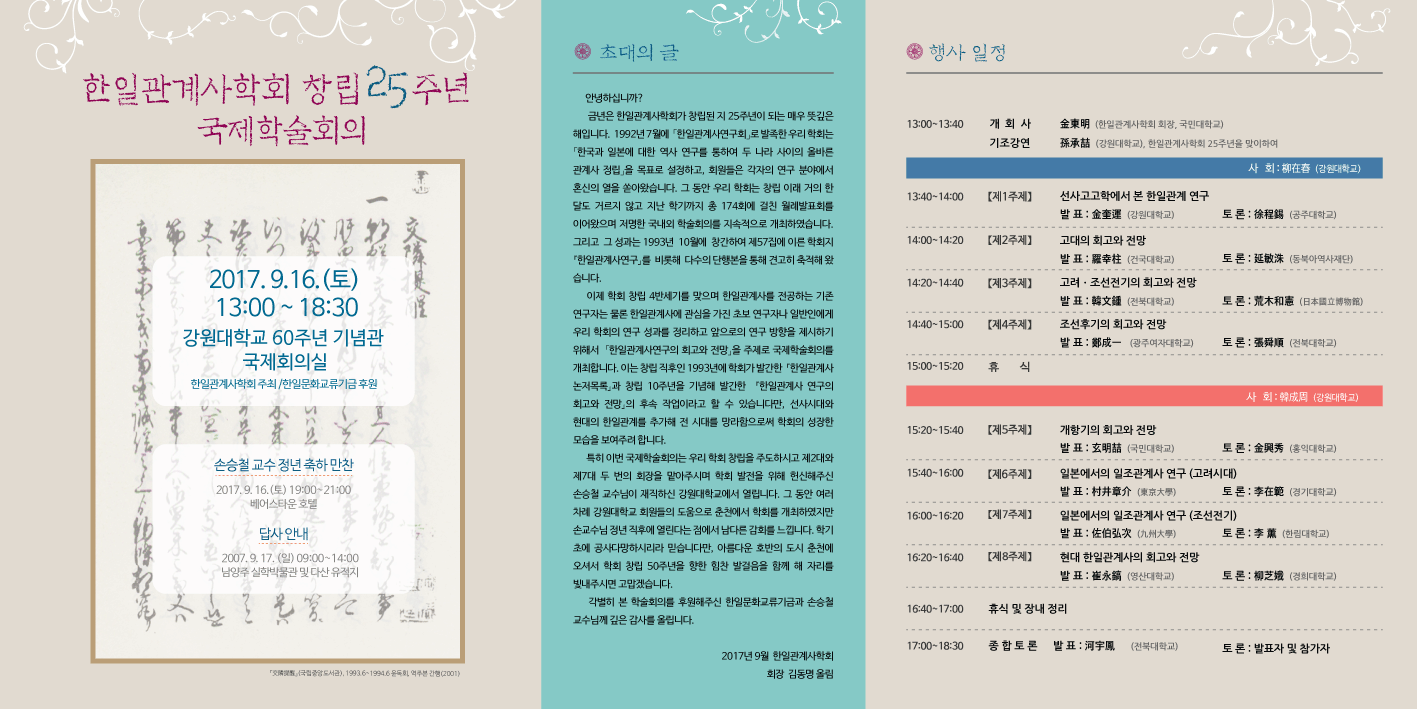 2017년 9월 1일 한일관계사학회 회장 김동명 삼가올림