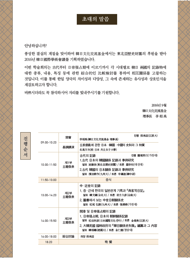 2016년 한일문화교류기금 학술회의 ; 프로그램