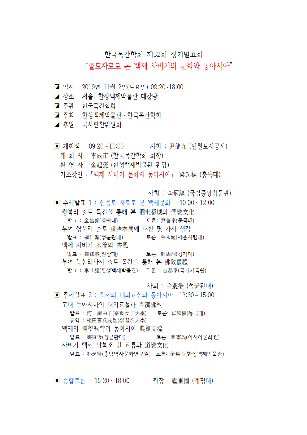 한국목간학회 제32회 정기발표회(2019.11.2)