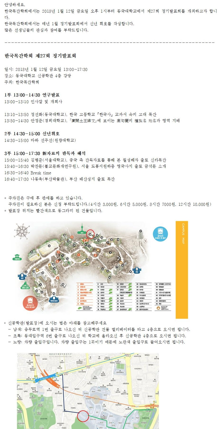 한국목간학회 제27회 정기발표회(2018.1.12)