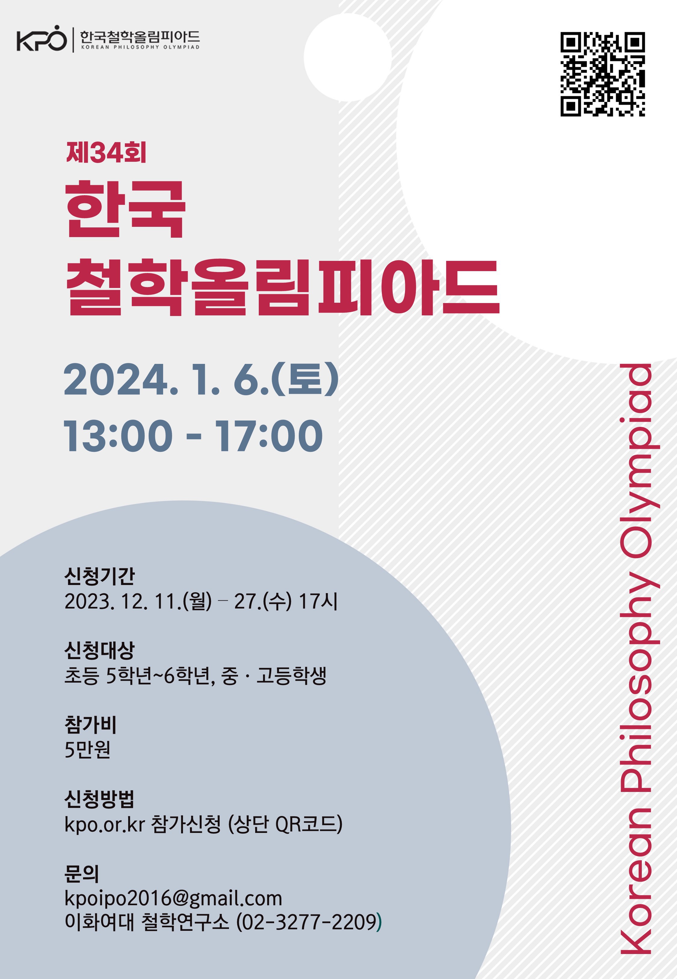 ㅇ 주최/주관 : 한국철학회 철학올림피아드 위원회/ 이화여대 철학연구소