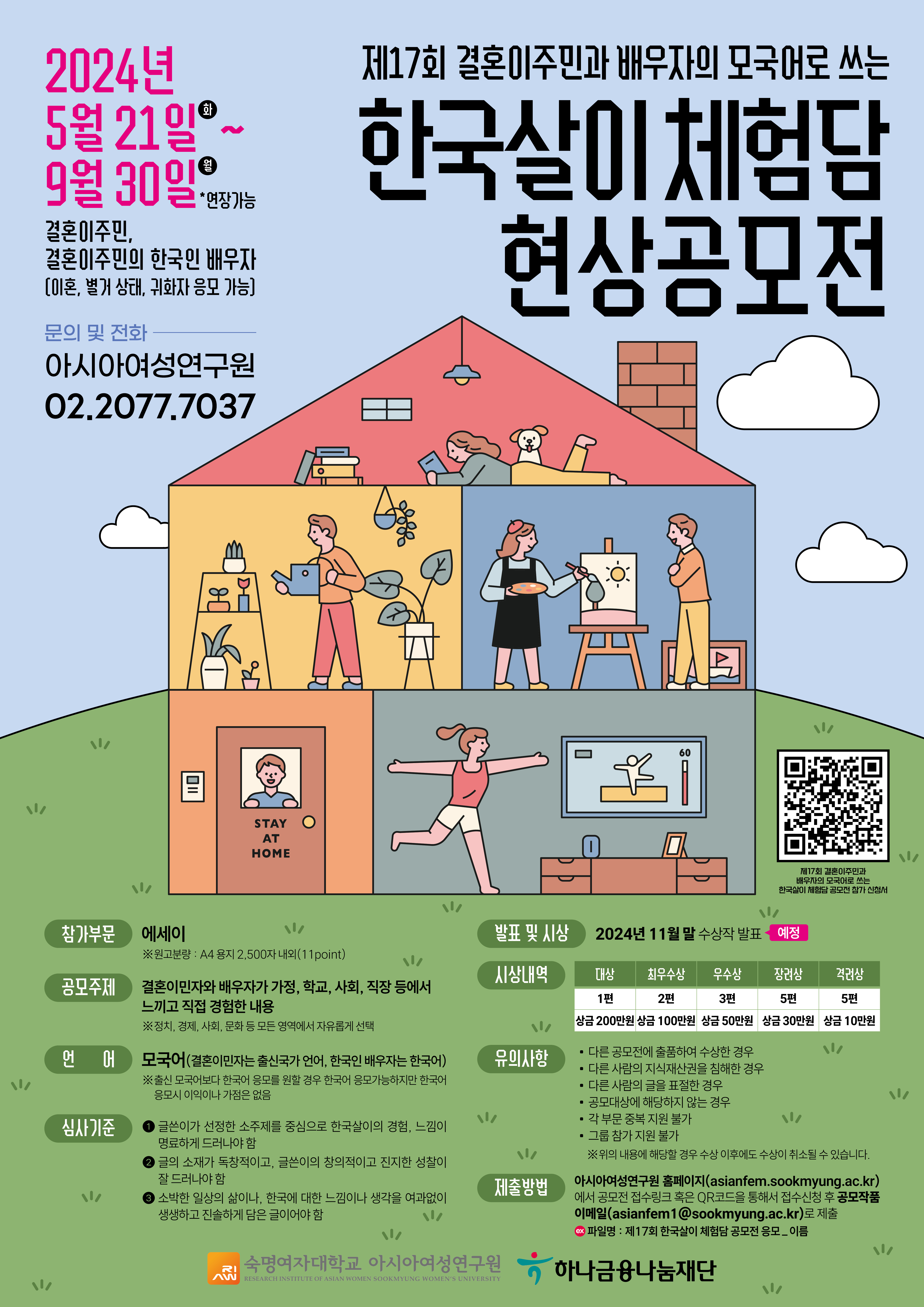 응모 자격 : 결혼 이주민, 결혼 이주민의 한국 배우자 (이혼, 별거, 귀화자 응모 가능)