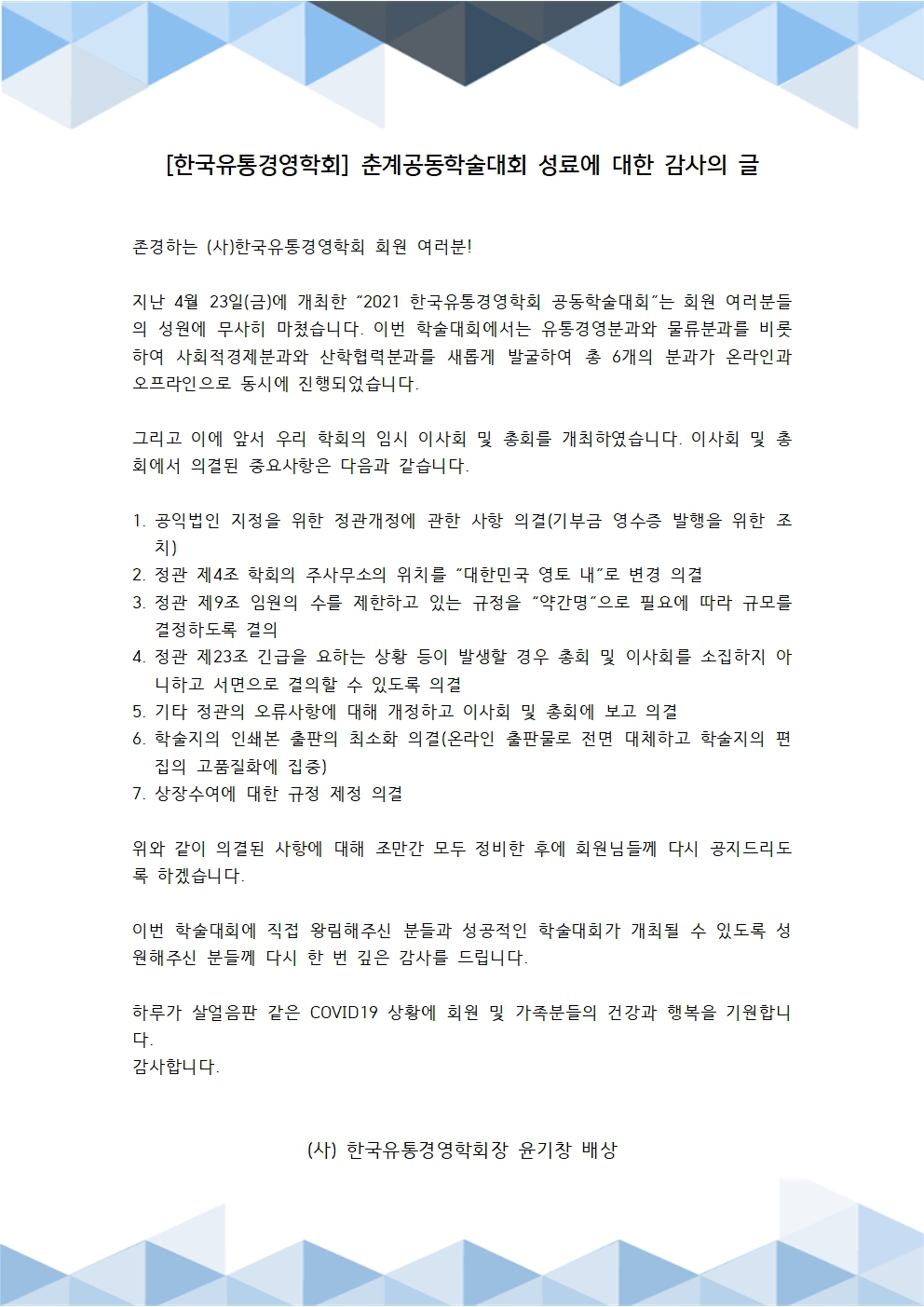 감사의 글(2021 한국유통경영학회, 춘계공동학술대회)