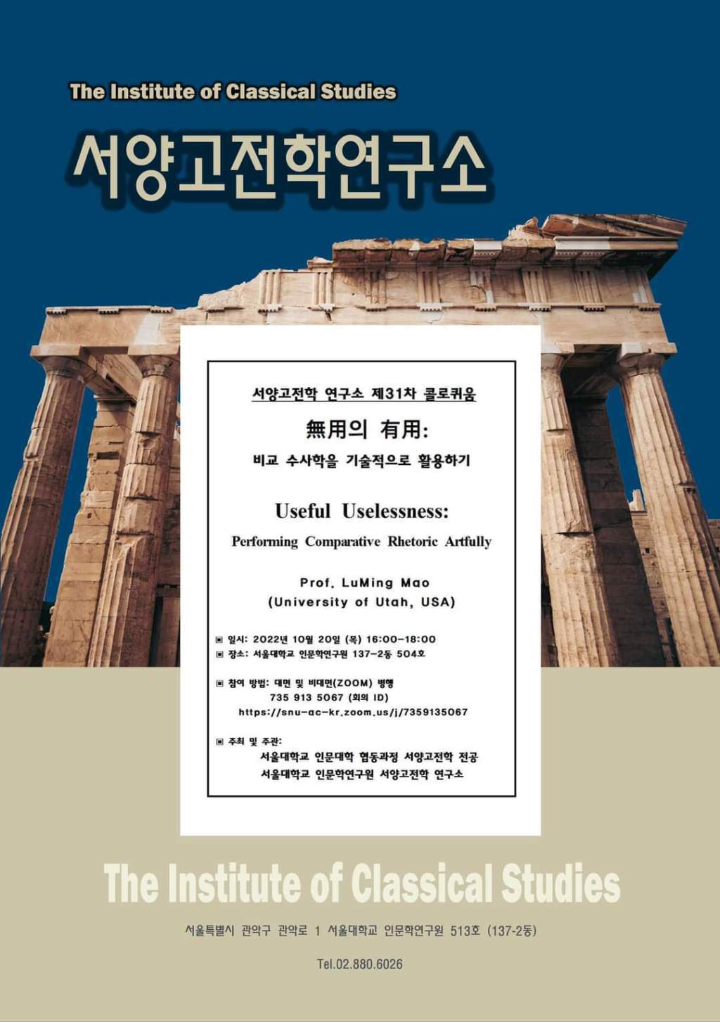 [학술] 서울대 서양고전학 연구소 제31차 콜로퀴움 안내
