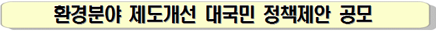 환경부는 행정제도와 서비스 등의 개선을 통한 국민편익을 도모하고창의적인 생각 및 정책 아이디어를 수렴하고자 다음과 같이 공모전을 개최하오니 많은 관심과 참여 바랍니다.