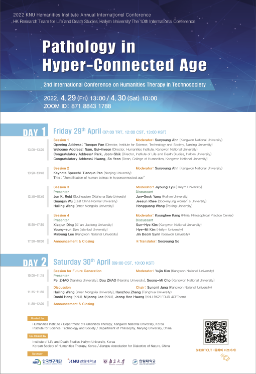 공동주최(Co-Host) : Institute of Life and Death Studies, Hallym University, Korea / Korean Society of Humanities Therapy, Korea/ Jiangsu Association for Dialectics of Nature, China
