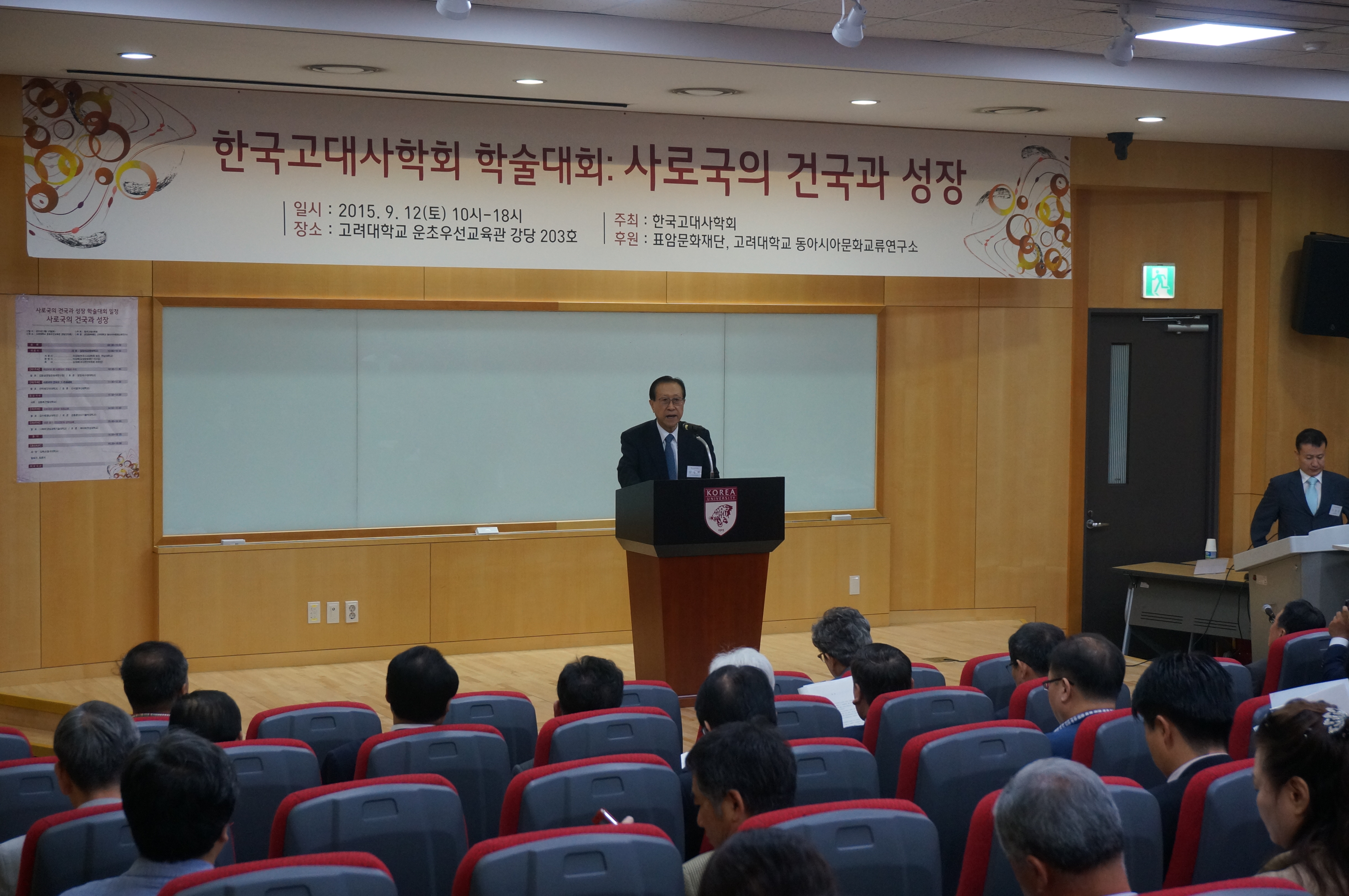 '사로국의 건국과 성장' 학술대회 김정배 국사편찬위원회 위원장님 축사 모습입니다.