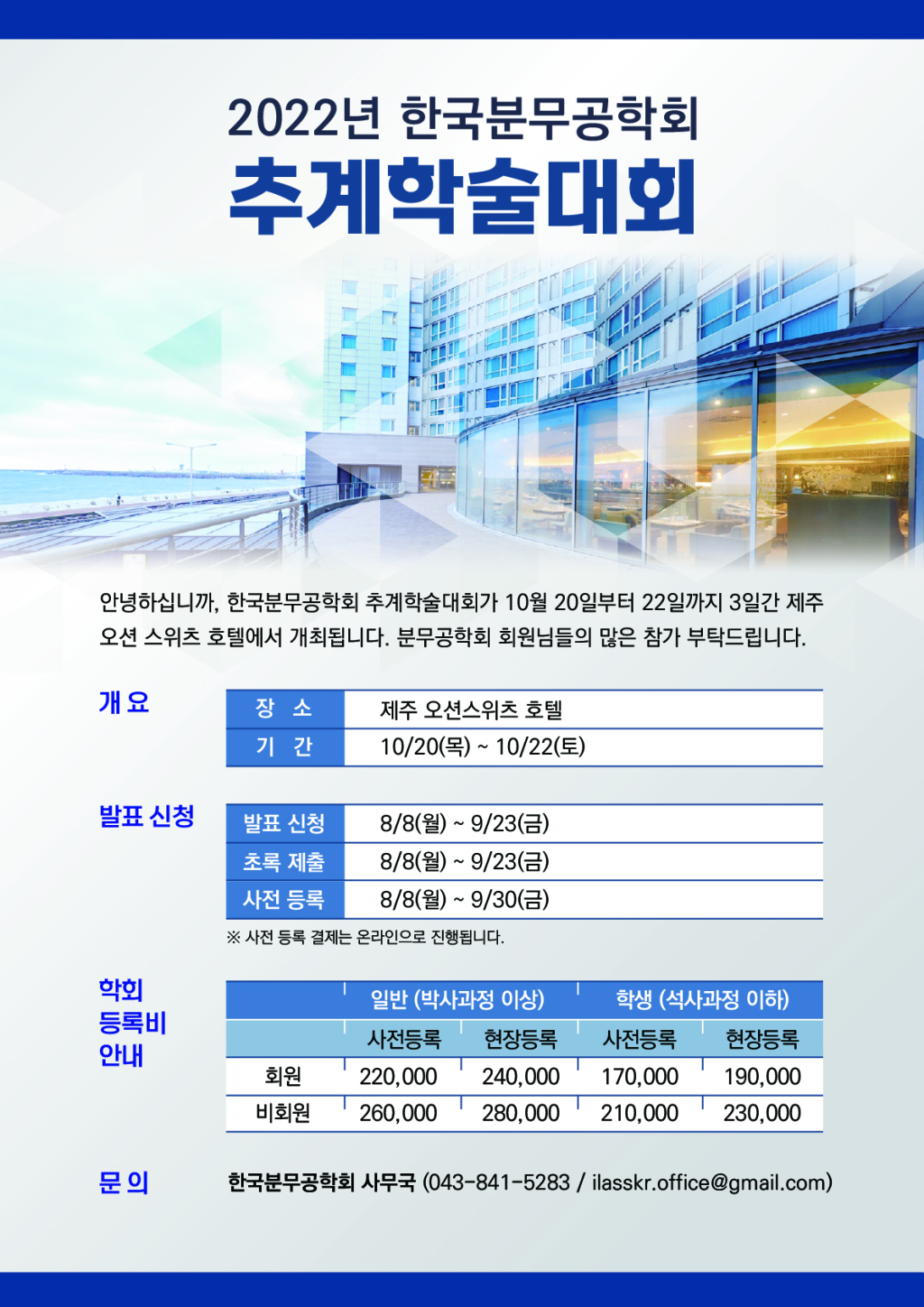 사전 등록 및 호텔 예약 : ~9/30(금)