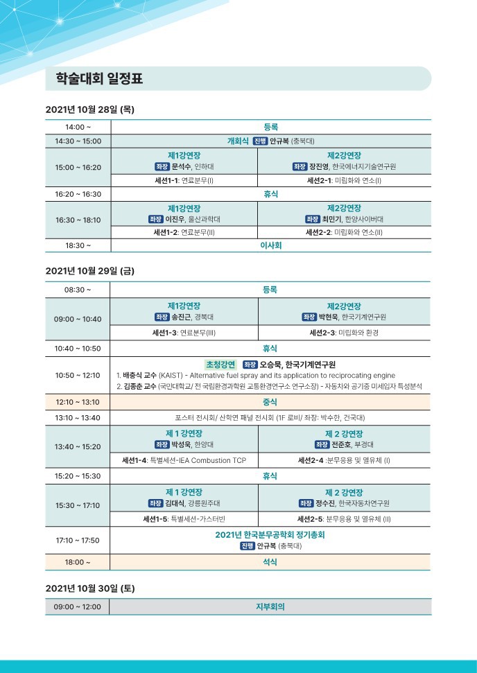 한국분무공학회 2021년 추계학술강연회 일정