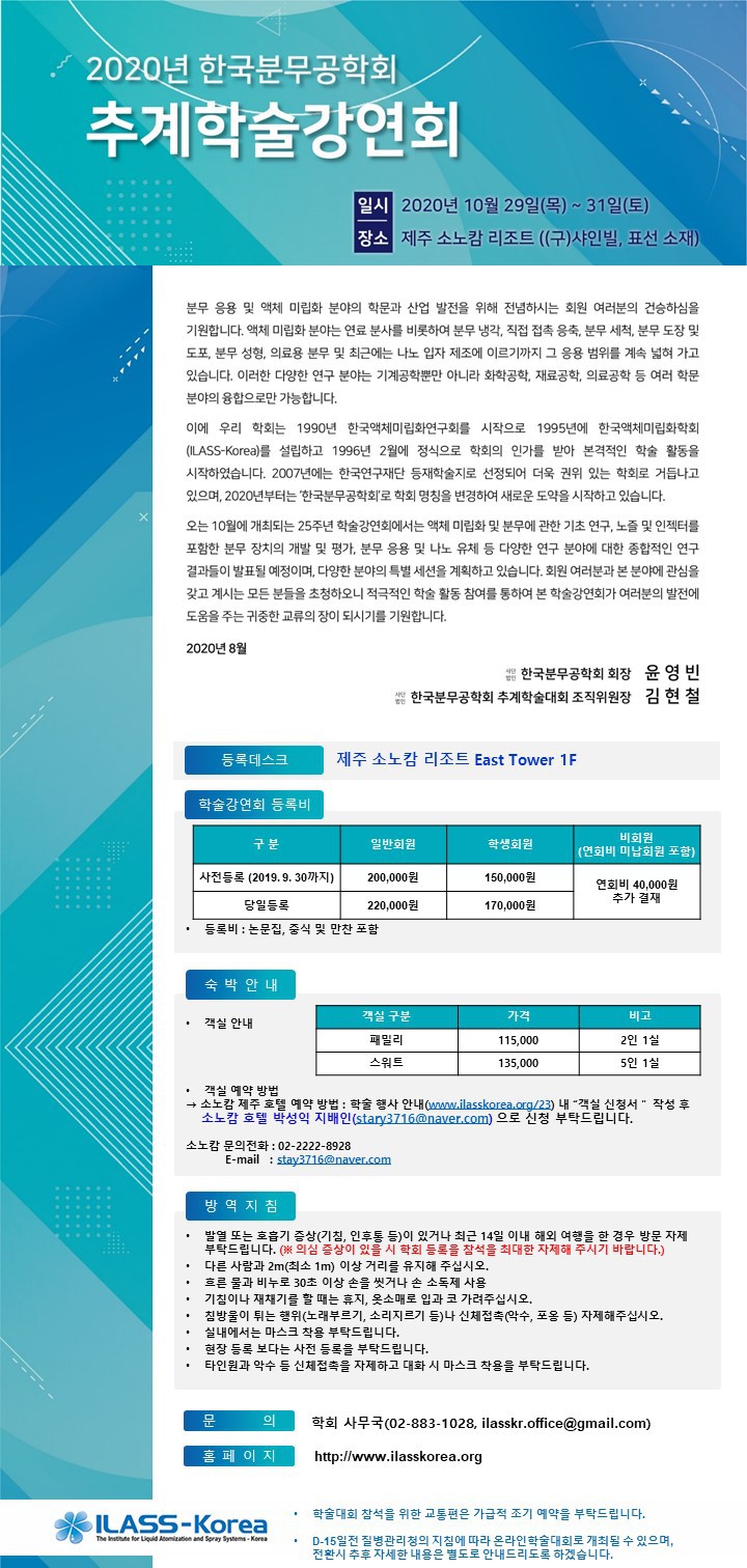 2020년 한국분무공학회 추계학술강연회 2차 초대장이 나와 다시한번 공지 드립니다.