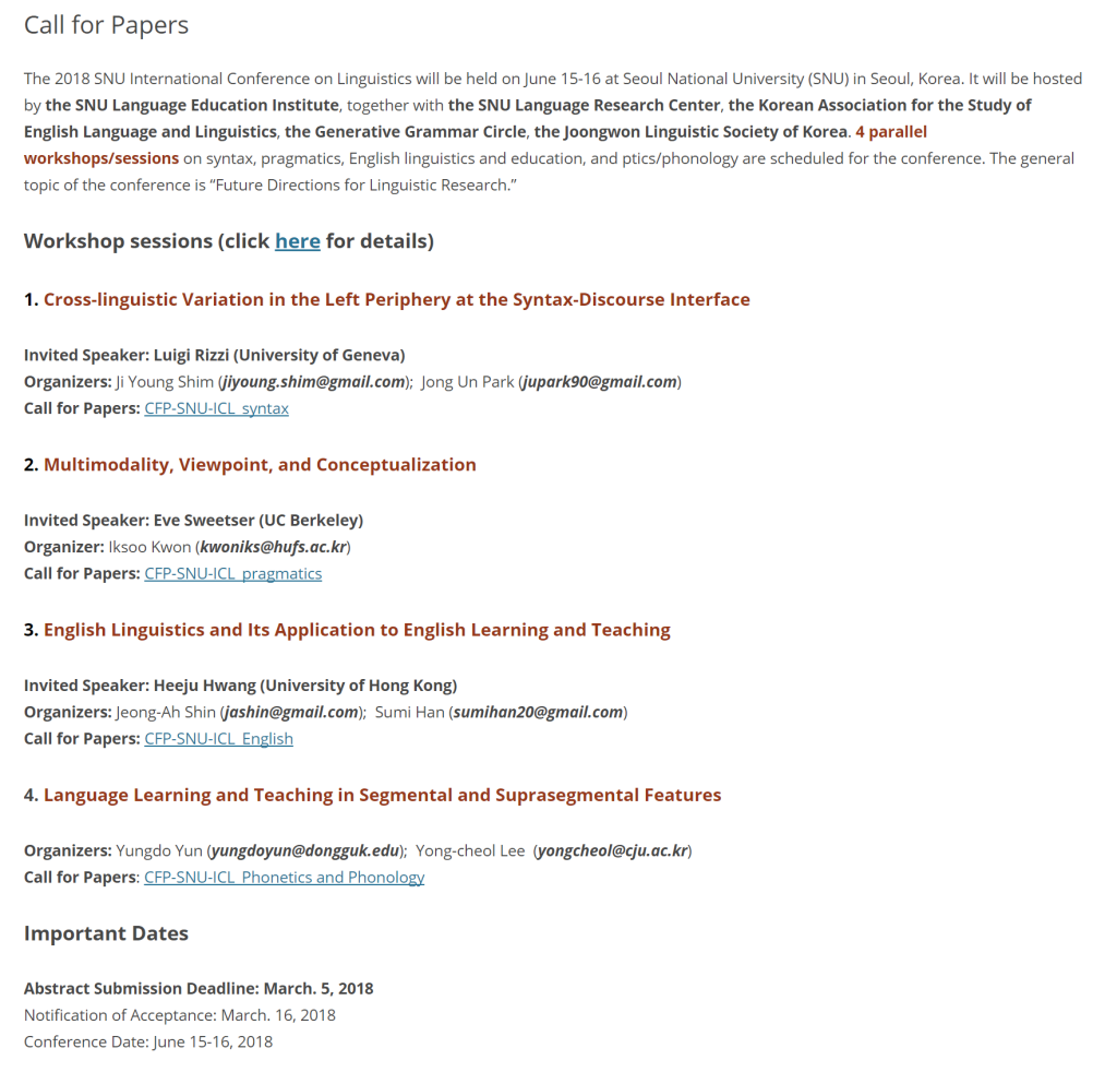 한국영어학회가 공동 주최하는, 서울대학교에서 6월 15일-16일 열릴
