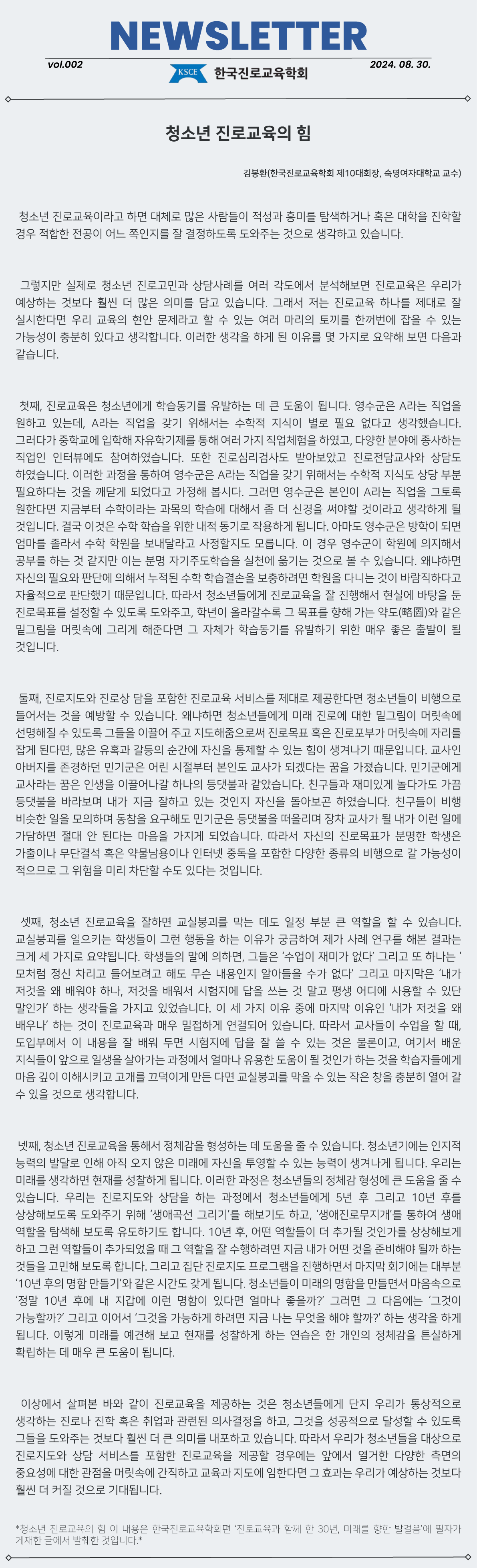 [뉴스레터 vol. 002] 학술지 연구성과 요약: 진로교육연구 제37권 제2호