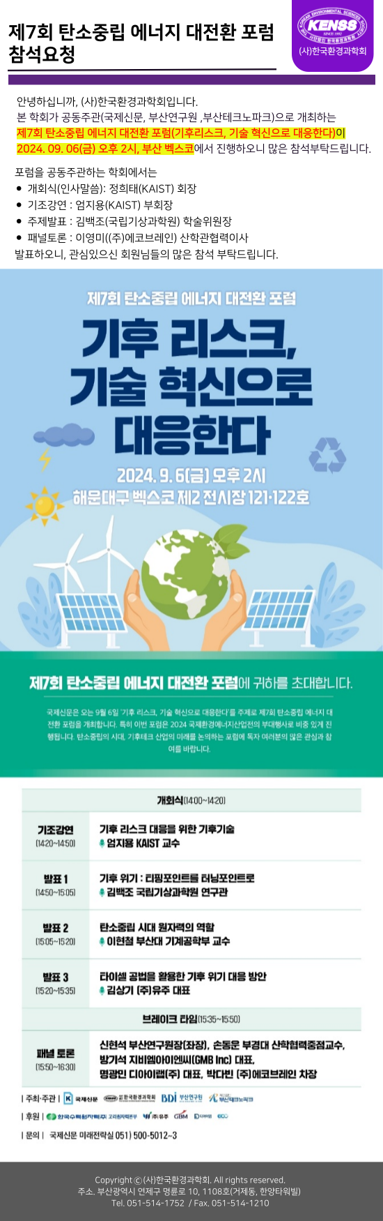 (학회 공동주관)제7회 탄소중립 에너지 대전환 포럼 참석요청