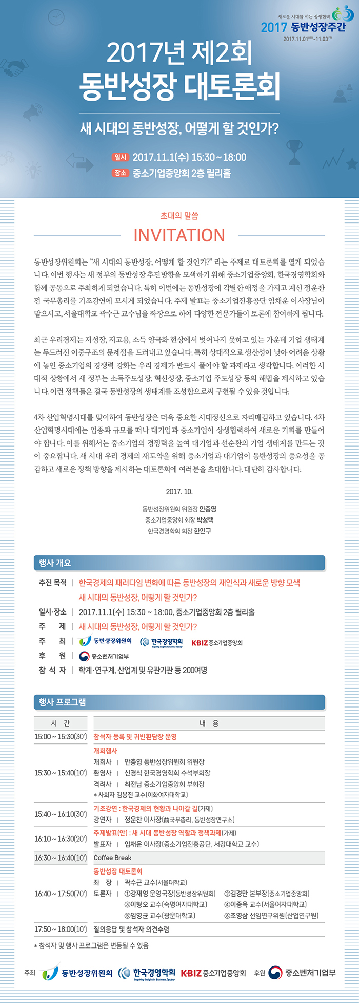 [한국경영학회] 2017년 제2회 동반성장 대토론회 안내드립니다. (11/1(수) 개최)