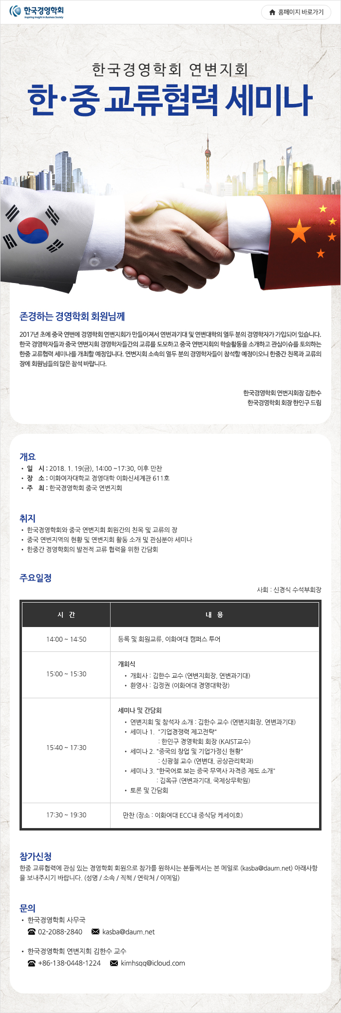 [한국경영학회] 연변지회 한ㆍ중 교류협력 세미나 안내드립니다.