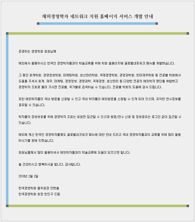 [한국경영학회] 재외경영학자 네트워크 지원을 위한 홈페이지 서비스 개발 안내