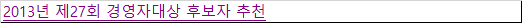 | 「 2013년 제 27회 경영자대상 후보자 추천 」 |