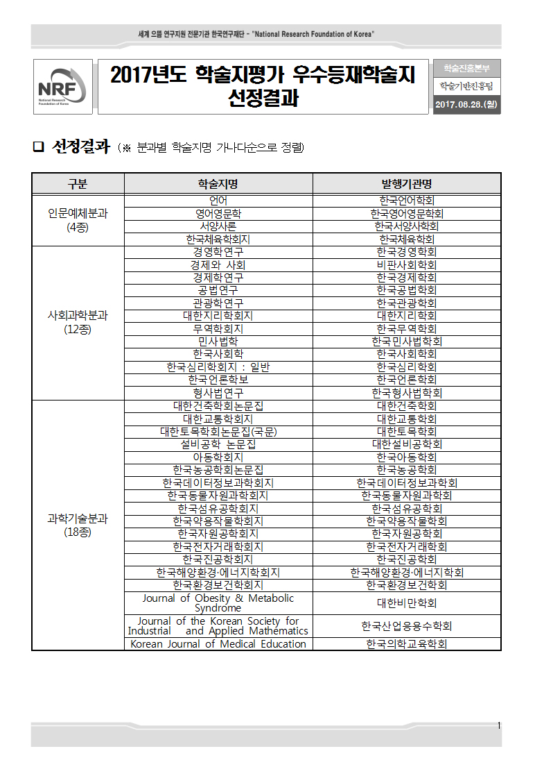 [한국경영학회] 경영학연구 우수등재학술지 선정