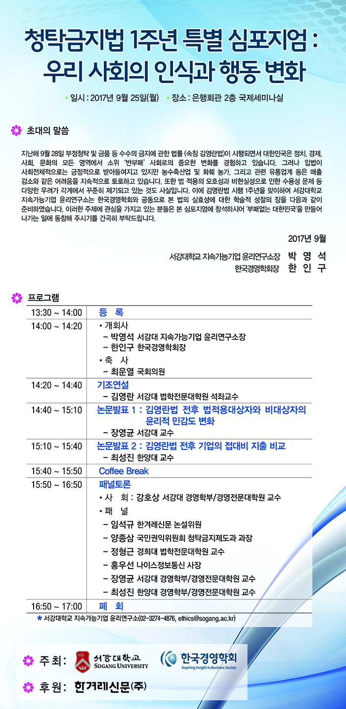 [한국경영학회] 청탁금지법 1주년 특별 심포지엄