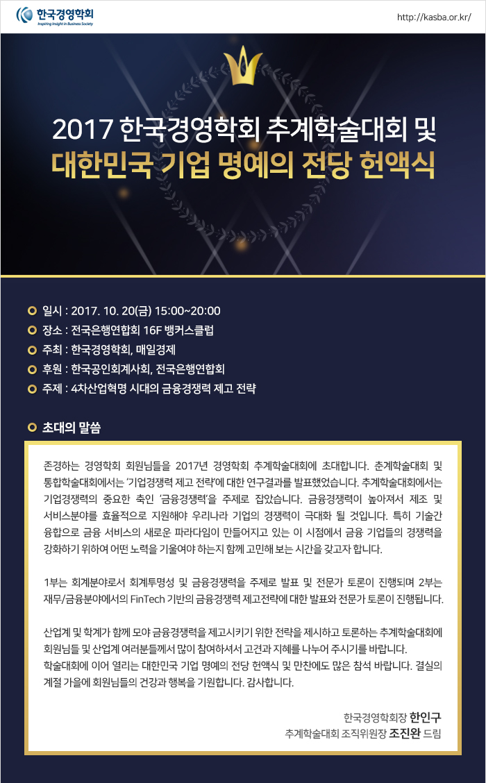 [한국경영학회] 2017 추계학술대회 및 명예의 전당 헌액식 (10/20 (금))