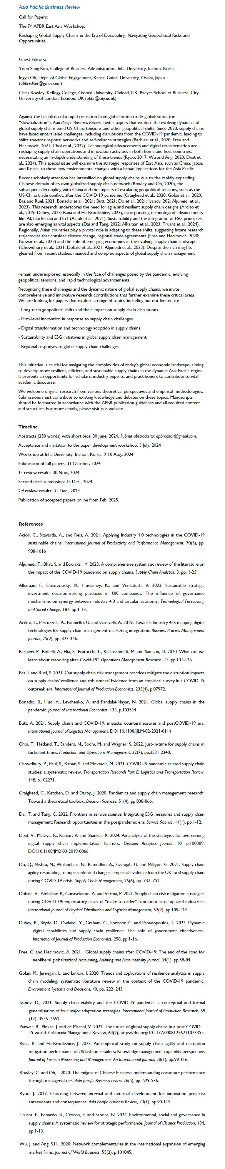 [한국경영학회] APBR Call for Papers: The 7th APBR East Asia Workshop