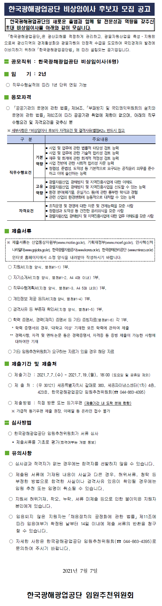 한국광해광업공단 비상임이사 후보자 모집 공고